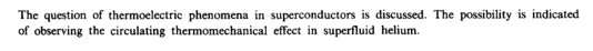 The question of thermoelectric phenomena in superconductors is discussed. The possibility is indicated of observing the circulating thermomechanical effect in superfluid helium.