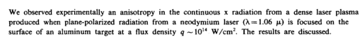 We observed experimentally an anisotropy in the continuous χ radiation from a dense laser plasma produced when plane-polarized radiation from a neodymium laser (λ = 1.06 μ) is focused on the surface of an aluminum target at a flux density q ~10H W/cm2. The results are discussed.