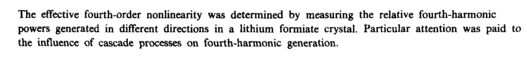 The effective fourth-order nonlinearity was determined by measuring the relative fourth-harmonic powers generated in different directions in a lithium formiate crystal. Particular attention was paid to the influence of cascade processes on fourth-harmonic generation.