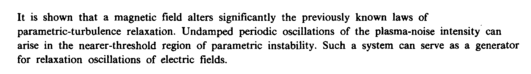 It is shown that a magnetic field alters significantly the previously known laws of parametric-turbulence relaxation. Undamped periodic oscillations of the plasma-noise intensity can arise in the nearer-threshold region of parametric instability. Such a system can serve as a generator for relaxation oscillations of electric fields.