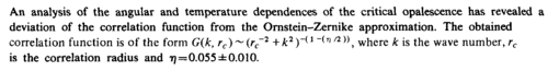 An analysis of the angular and temperature dependences of the critical opalescence has revealed a deviation of the correlation function from the Ornstein-Zernike approximation. The obtained correlation function is of the form G{k, rc)~(rc~2 + k2)~(l ~<r'/2»j where к is the wave number, rc is the correlation radius and η=0.055±0.010.