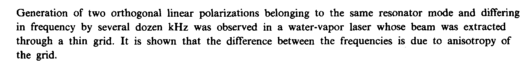 Generation of two orthogonal linear polarizations belonging to the same resonator mode and differing in frequency by several dozen kHz was observed in a water-vapor laser whose beam was extracted through a thin grid. It is shown that the difference between the frequencies is due to anisotropy of the grid.