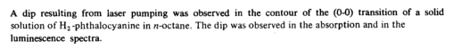 A dip resulting from laser pumping was observed in the contour of the (0-0) transition of a solid solution of H2-phthalocyamne in и-octane. The dip was observed in the absorption and in the luminescence spectra.