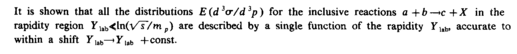 It is shown that all the distributions Ε (d 3σ/ά 3p ) for the inclusive reactions a + b —»c + X in the rapidity region õÉØ<1Ð(Õô"/ÔÒ) are described by a single function of the rapidity õ,,Ø, accurate to within a shift õÊ->Ylab + const.