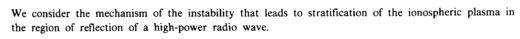 We consider the mechanism of the instability that leads to stratification of the ionospheric plasma in the region of reflection of a high-power radio wave.