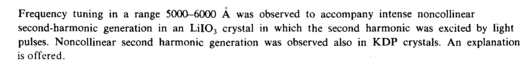 Frequency tuning in a range 5000-6000 A was observed to accompany intense noncollinear second-harmonic generation in an L1IO3 crystal in which the second harmonic was excited by light pulses. Noncollinear second harmonic generation was observed also in KDP crystals. An explanation is offered.