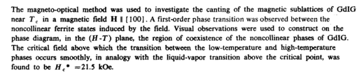 The magneto-optical method was used to investigate the canting of the magnetic sublattices of GdIG near Tc in a magnetic field Η || [100]. A first-order phase transition was observed between the noncollinear ferrite states induced by the field. Visual observations were used to construct on the phase diagram, in the (Я-Т) plane, the region of coexistence of the noncollinear phases of GdIG. The critical field above which the transition between the low-temperature and high-temperature phases occurs smoothly, in analogy with the liquid-vapor transition above the critical point, was found to be Hc* =21.5 kOe.
