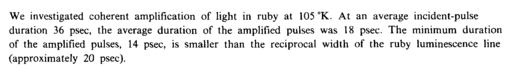 We investigated coherent amplification of light in ruby at 105 °K. At an average incident-pulse duration 36 psec, the average duration of the amplified pulses was 18 psec. The minimum duration of the amplified pulses, 14 psec, is smaller than the reciprocal width of the ruby luminescence line (approximately 20 psec).