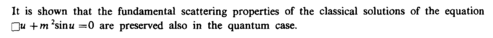 It is shown that the fundamental scattering properties of the classical solutions of the equation □u + m