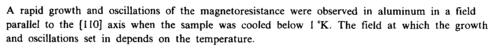 A rapid growth and oscillations of the magnetoresistance were observed in aluminum in a field parallel to the [110] axis when the sample was cooled below 1 °K. The field at which the growth and oscillations set in depends on the temperature.