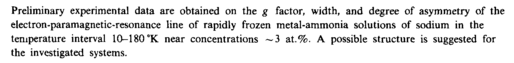 Preliminary experimental data are obtained on the g factor, width, and degree of asymmetry of the electron-paramagnetic-resonance line of rapidly frozen metal-ammonia solutions of sodium in the temperature interval 10-180 °K near concentrations ~3 at.%. A possible structure is suggested for the investigated systems.