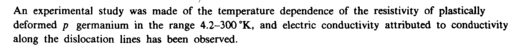 An experimental study was made of the temperature dependence of the resistivity of plastically deformed ρ germanium in the range 4.2-300 °K, and electric conductivity attributed to conductivity along the dislocation lines has been observed.