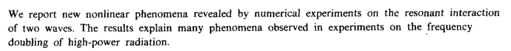 We report new nonlinear phenomena revealed by numerical experiments on the resonant interaction of two waves. The results explain many phenomena observed in experiments on the frequency doubling of high-power radiation.