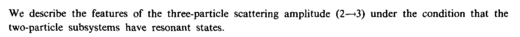We describe the features of the three-particle scattering amplitude (2—>3) under the condition that the two-particle subsystems have resonant states.