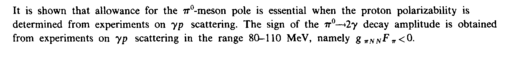 It is shown that allowance for the 7T°-meson pole is essential when the proton polarizability is determined from experiments on у ρ scattering. The sign of the я-0—»2γ decay amplitude is obtained from experiments on yp scattering in the range 80-110 MeV, namely g wNNF π<0.
