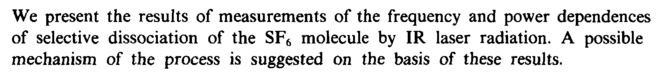 We present the results of measurements of the frequency and power dependences of selective dissociation of the SF6 molecule by IR laser radiation. A possible mechanism of the process is suggested on the basis of these results.