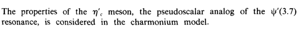meson, the pseudoscalar analog of the ψ'(3.7) resonance, is considered in the charmonium model.