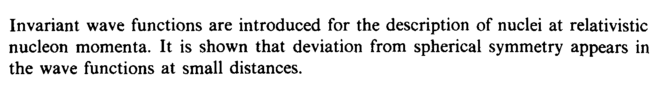 Invariant wave functions are introduced for the description of nuclei at relativistic nucleon momenta. It is shown that deviation from spherical symmetry appears in the wave functions at small distances.