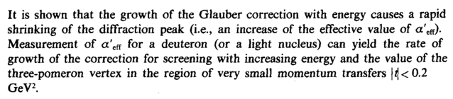 It is shown that the growth of the Glauber correction with energy causes a rapid shrinking of the diffraction peak (i.e., an increase of the effective value of a'eft). Measurement of a'eff for a deuteron (or a light nucleus) can yield the rate of growth of the correction for screening with increasing energy and the value of the three-pomeron vertex in the region of very small momentum transfers |i|<0.2 GeV2.