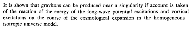 It is shown that gravitons can be produced near a singularity if account is taken of the reaction of the energy of the long-wave potential excitations and vortical excitations on the course of the cosmological expansion in the homogeneous isotropic universe model.