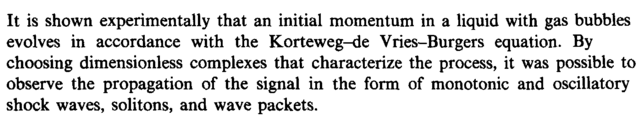 It is shown experimentally that an initial momentum in a liquid with gas bubbles evolves in accordance with the Korteweg-de Vries-Burgers equation. By choosing dimensionless complexes that characterize the process, it was possible to observe the propagation of the signal in the form of monotonic and oscillatory shock waves, solitons, and wave packets.