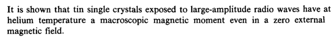It is shown that tin single crystals exposed to large-amplitude radio waves have at helium temperature a macroscopic magnetic moment even in a zero external magnetic field.