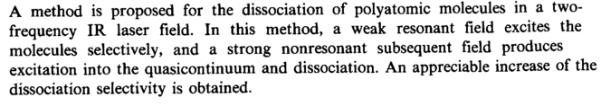 A method is proposed for the dissociation of polyatomic molecules in a two-frequency IR laser field. In this method, a weak resonant field excites the molecules selectively, and a strong nonresonant subsequent field produces excitation into the quasicontinuum and dissociation. An appreciable increase of the dissociation selectivity is obtained.