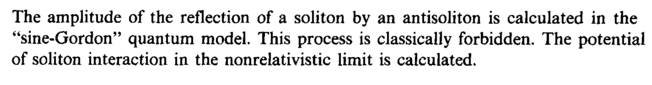 The amplitude of the reflection of a soliton by an antisoliton is calculated in the "sine-Gordon" quantum model. This process is classically forbidden. The potential of soliton interaction in the nonrelativistic limit is calculated.