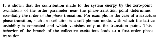 It is shown that the contribution made to the system energy by the zero-point oscillations of the order parameter near the phase-transition point determines essentially the order of the phase transition. For example, in the case of a structure phase transition, such an oscillation is a soft phonon mode, with which the lattice instability is connected and which vanishes only at the transition point. This behavior of the branch of the collective excitations leads to a first-order phase transition.