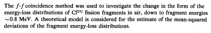 The /-/ coincidence method was used to investigate the change in the form of the energy-loss distributions of Cf252 fission fragments in air, down to fragment energies ~0.8 MeV. A theoretical model is considered for the estimate of the mean-squared deviations of the fragment energy-loss distributions.