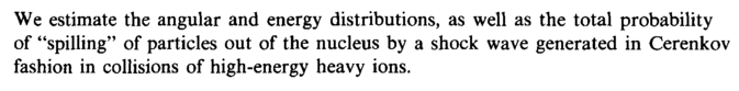 We estimate the angular and energy distributions, as well as the total probability of "spilling" of particles out of the nucleus by a shock wave generated in Cerenkov fashion in collisions of high-energy heavy ions.
