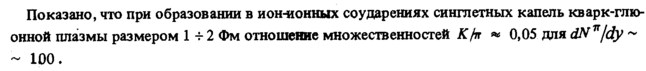 Показано, что при образовании в ион-ионных соударениях синглетных капель кварк-глю-онной плазмы размером 1 -г 2 Фм отношение множественностей Kfn 0,05 для dN^/dy ~ ~ 100.