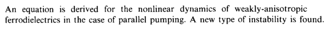 An equation is derived for the nonlinear dynamics of weakly-anisotropic ferrodielectrics in the case of parallel pumping. A new type of instability is found.