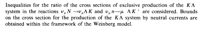 Inequalities for the ratio of the cross sections of exclusive production of the К Л system in the reactions νμΝ —>νμΛΚ and νμη—>μ Λ К 1 are considered. Bounds on the cross section for the production of the К Л system by neutral currents are obtained within the framework of the Weinberg model.