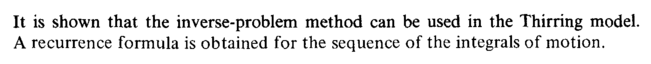 It is shown that the inverse-problem method can be used in the Thirring model. A recurrence formula is obtained for the sequence of the integrals of motion.