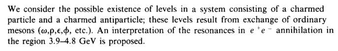 We consider the possible existence of levels in a system consisting of a charmed particle and a charmed antiparticle; these levels result from exchange of ordinary mesons (ω,ρ,ε,φ, etc.). An interpretation of the resonances in e +e _ annihilation in the region 3.9^4.8 GeV is proposed.