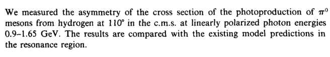 We measured the asymmetry of the cross section of the photoproduction of π° mesons from hydrogen at 110° in the c.m.s. at linearly polarized photon energies 0.9-1.65 GeV. The results are compared with the existing model predictions in the resonance region.