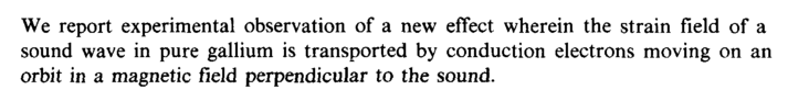 We report experimental observation of a new effect wherein the strain field of a sound wave in pure gallium is transported by conduction electrons moving on an orbit in a magnetic field perpendicular to the sound.