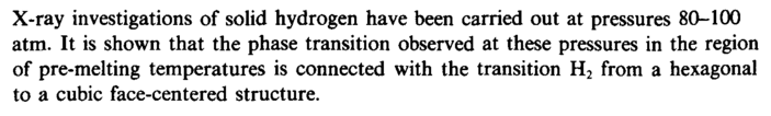 X-ray investigations of solid hydrogen have been carried out at pressures 80-100 atm. It is shown that the phase transition observed at these pressures in the region of pre-melting temperatures is connected with the transition H2 from a hexagonal to a cubic face-centered structure.