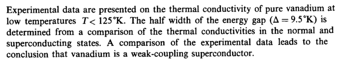 Experimental data are presented on the thermal conductivity of pure vanadium at low temperatures T< 125°K. The half width of the energy gap (Δ = 9.5°K) is determined from a comparison of the thermal conductivities in the normal and superconducting states. A comparison of the experimental data leads to the conclusion that vanadium is a weak-coupling superconductor.