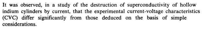It was observed, in a study of the destruction of superconductivity of hollow indium cylinders by current, that the experimental current-voltage characteristics (CVC) differ significantly from those deduced on the basis of simple considerations.