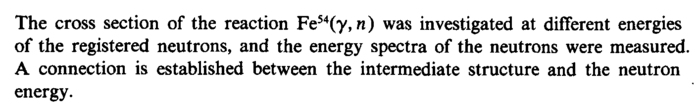 The cross section of the reaction Fe54(y, n) was investigated at different energies of the registered neutrons, and the energy spectra of the neutrons were measured. A connection is established between the intermediate structure and the neutron energy.
