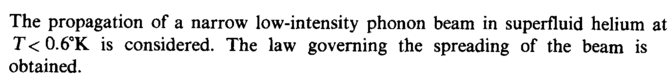 The propagation of a narrow low-intensity phonon beam in superfluid helium at T< 0.6°K is considered. The law governing the spreading of the beam is obtained.