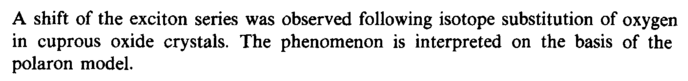 A shift of the exciton series was observed following isotope substitution of oxygen in cuprous oxide crystals. The phenomenon is interpreted on the basis of the polaron model.