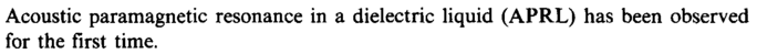 Acoustic paramagnetic resonance in a dielectric liquid (APRL) has been observed for the first time.