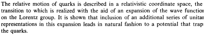 The relative motion of quarks is described in a relativistic coordinate space, the transition to which is realized with the aid of an expansion of the wave functioi on the Lorentz group. It is shown that inclusion of an additional series of unitai representations in this expansion leads in natural fashion to a potential that trap; the quarks.