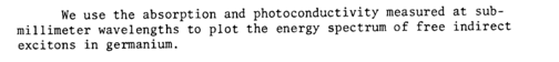 We use the absorption and photoconductivity measured at sub-millimeter wavelengths to plot the energy spectrum of free indirect excitons in germanium.