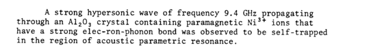 A strong hypersonic wave of frequency 9.4 GHz propagating through an A1203 crystal containing paramagnetic Ni3+ ions that have a strong elec-ron-phonon bond was observed to be self-trapped in the region of acoustic parametric resonance.