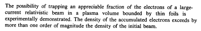 The possibility of trapping an appreciable fraction of the electrons of a large-current relativistic beam in a plasma volume bounded by thin foils is experimentally demonstrated. The density of the accumulated electrons exceeds by more than one order of magnitude the density of the initial beam.