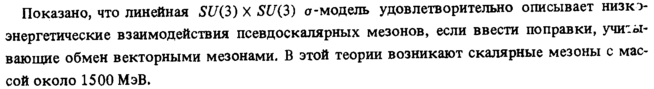 Показано, что линейная SU(3) X 51/(3) σ-модель удовлетворительно описывает низкоэнергетические взаимодействия псевдоскалярных мезонов, если ввести поправки, учитывающие обмен векторными мезонами. В этой теории возникают скалярные мезоны с массой около 1500 МэВ.